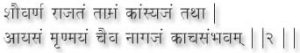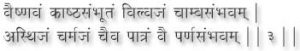Utensils made from the following materials are recommended: Gold, Silver, Copper, Bronze, and Brass. Iron Clay, Ivory, Grass, wood from scared trees, Bones, Leather and Leaves. (2,3). The Shivambu (one’s own urine) should be collected in a utensil made of any of these materials. Among them clay are better, and copper ones are by far the best (4)