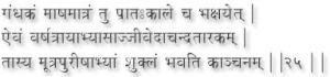 Therefore urine that has not been matured or aged should never for massaging the body. On the other hand, O Goddess, if property matured urine is us for the purpose, all attainments are within one’s grasp. (51)