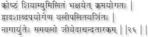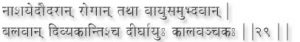 The powder of the koshtha fruit should be makes properly with Shivambu and taken in the prescribed manner in these practice is continued for ten years one body baby breathe from the remains of old age such as wrinkles in the skin and widening that of the hair one of the choir this the state of a thousand in the birds and use as long as the moon and the stars continue to exist. (26)