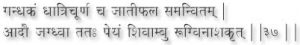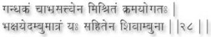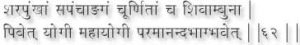 The practitioners who drinks Shivambu with the powder of the five parts of the sharaopunka (Devnaal) plant, acquires pre-eminence among the Yogis, and enjoys spiritual ecstasy. (62)