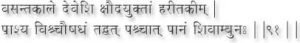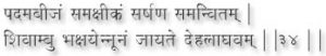 Even if he drinks Shivambu only once a day and massages his body with it ones a day, he becomes capable of great exploits. If this practice is followed for three years his body will acquire radiance he will become the master of all arts and science, he will acquire veracity and felicity of speech and he will live so long as the moon and the stars continue to exist. (88, 89)