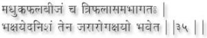 Equal quantities of Mahua fruit seeds and Triphala Choorna (sees Verse27) taken daily with Shivambu will eliminate the possibility of senile degeneration and all diseases. (35); He who takes rock salt mixed with an equal quality of honey every morning, and follows it up with Shivambu comes to possess a body with divine attribute. (36)