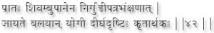 By drinking Shivambu every morning and chewing leaves of Nirgundi (Viter Nirgundo) after drinking a Yogi attains strength, becomes far-sighted and succeeds in all his undertakings (42)