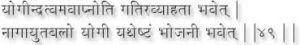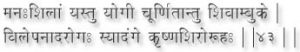 The Yogi who applies a past of Mansheel ground with Shivambu all over his body frees himself from diseases and he’s hair becomes black (i.e. in spite of age). (43)