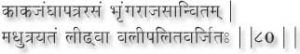 The juice of the leaves of Kavali should be mixed with the juice of Bhringaraaj leaves, and taken with honey crystal sugar and ghee. The mixture is like a thick paste, and has to be linked. One who takes this mixture regularly will be free from the signs of old age, and his hair will remain back. (80)