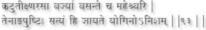 A man who has continued the practice for a year becomes that equal of the sun in radian. He who has continued it for two years conquers the elements Earth. (16)