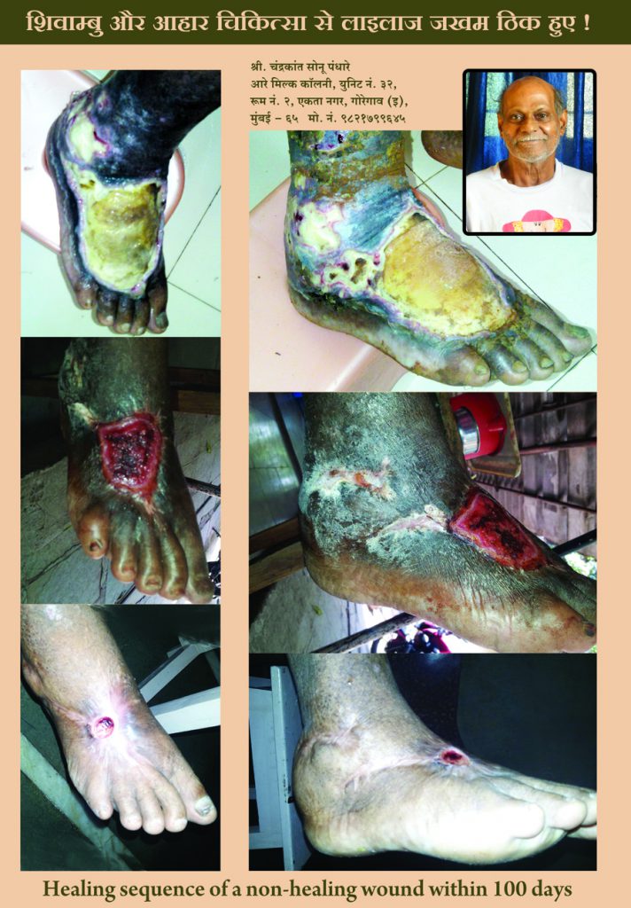 I was told by various people about the wonderful healing properties of auto-urine therapy, and alternative therapies. Finally my father took me to the Shivambu Center in Kolhapur and admitted me for a period of one month. I all followed all the treatments religiously including balanced diet and nutrition. The results are miraculous. Now my non- healing wound is completely healed and the locked calcified left knee joint is totally freed. Now I can ride bicycle and have returned to work as before.Mr. Narayan Pol